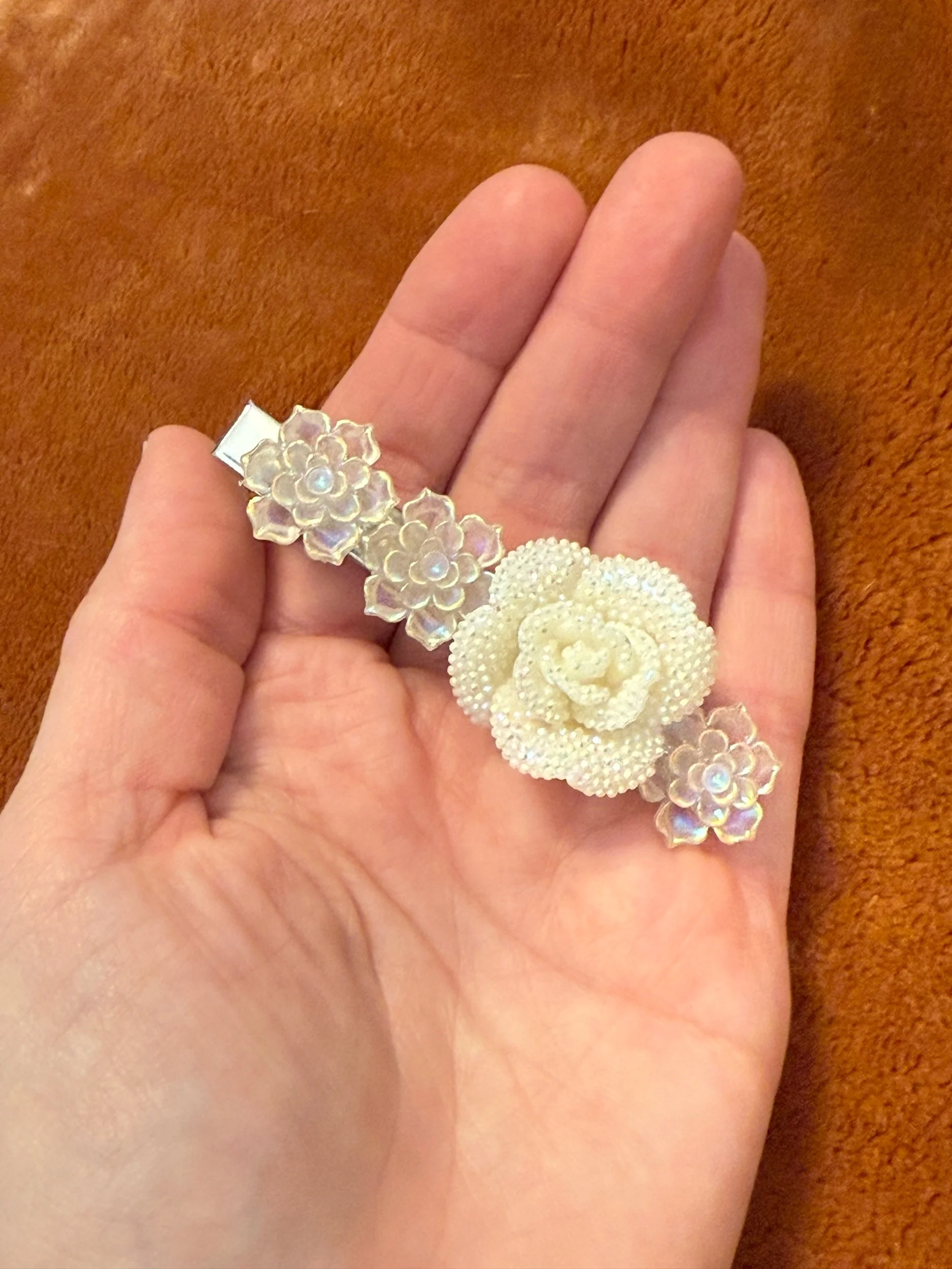 Shop › Elizabeth 3” Clip - iridescent cream Image 1 of 1 Elizabeth 3” Clip - iridescent cream $7.75 Add To Cart Added!